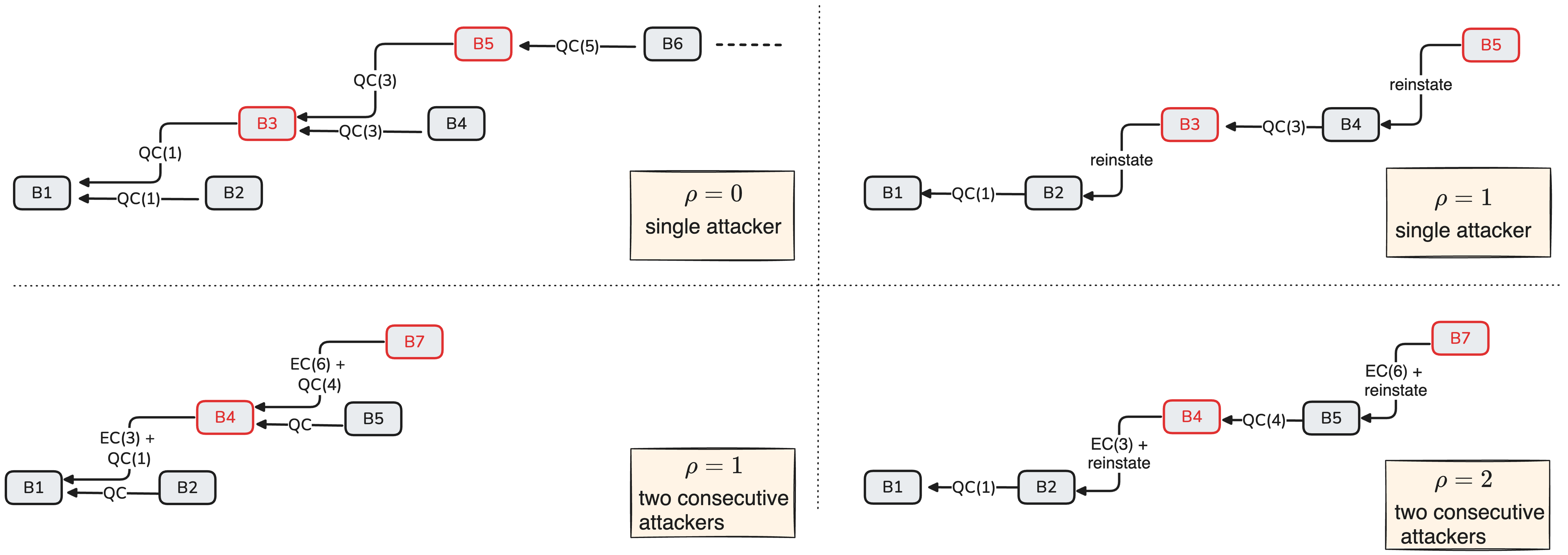We remark that the reinstating mechanism is beneficial also in case the previous leader was benignly sluggish and fell short of obtaining a full quorum or votes. Carry guarantees that even a single vote reaches an honest next leader it can reinstate it.